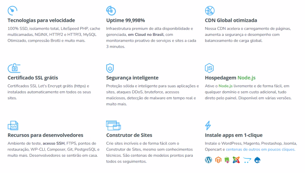 Nossa hospedagem é construída em Cloud no Brasil, com otimizações exclusivas e